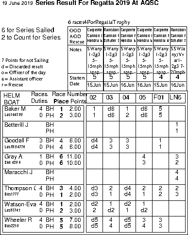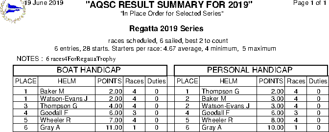 the four races for the Regatta Trophy (best two to count). Mike Baker capsized in the last race.