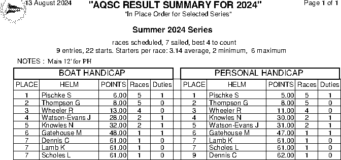 Steve Pischke has 1st place on PH (and BH) so wins the "Main 12ft National 12/Firefly Trophy"