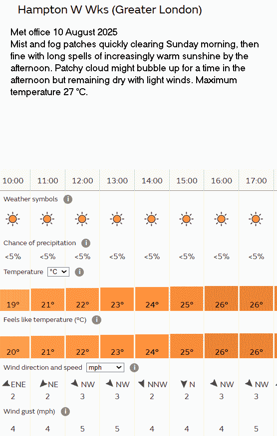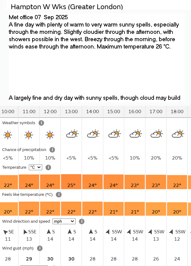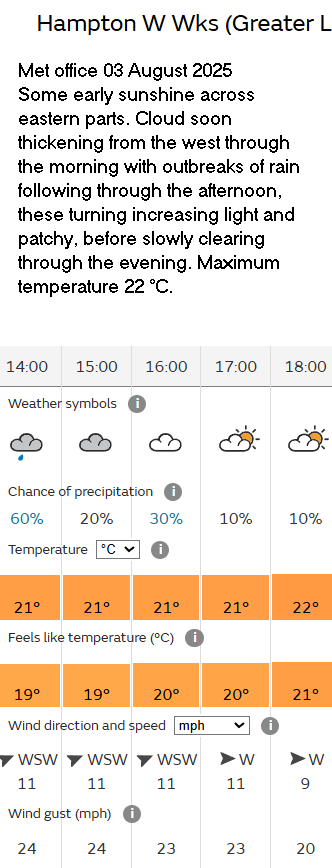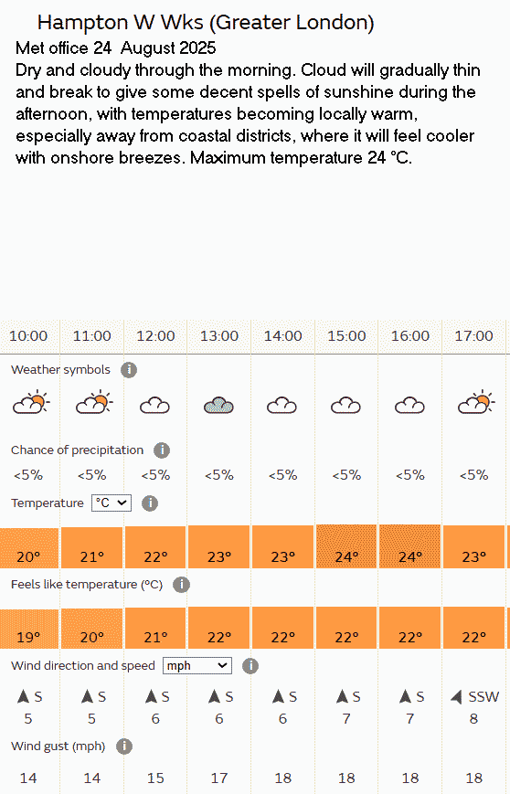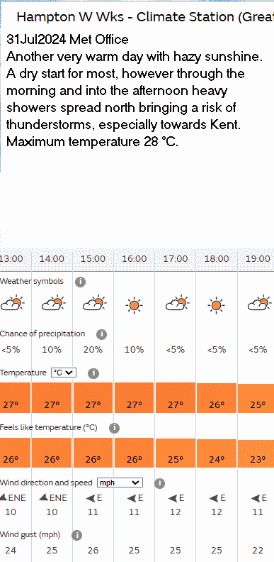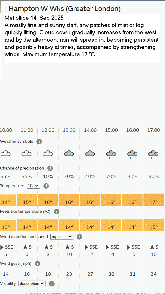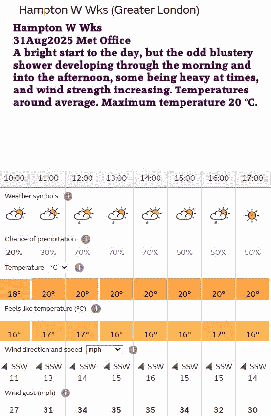31 Aug Forecast Weather Yellow warning of thunder storms; they didn’t occur.