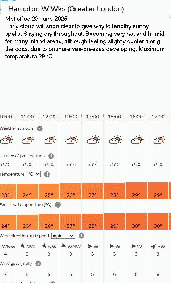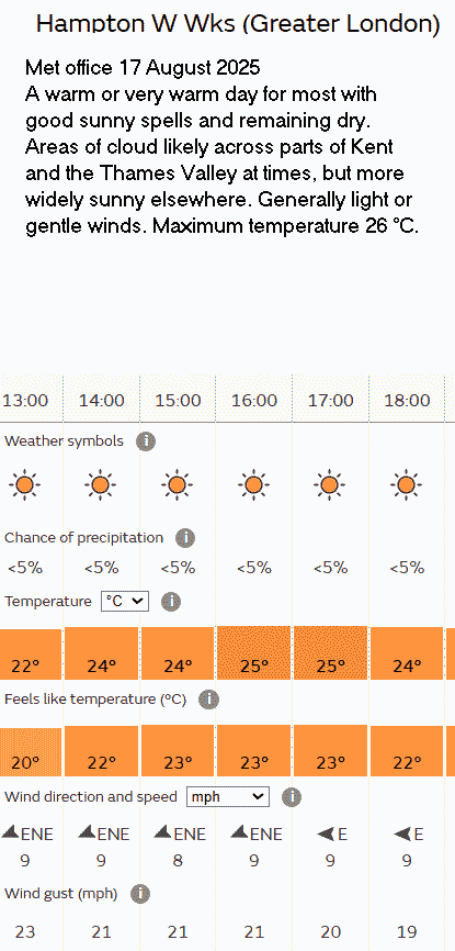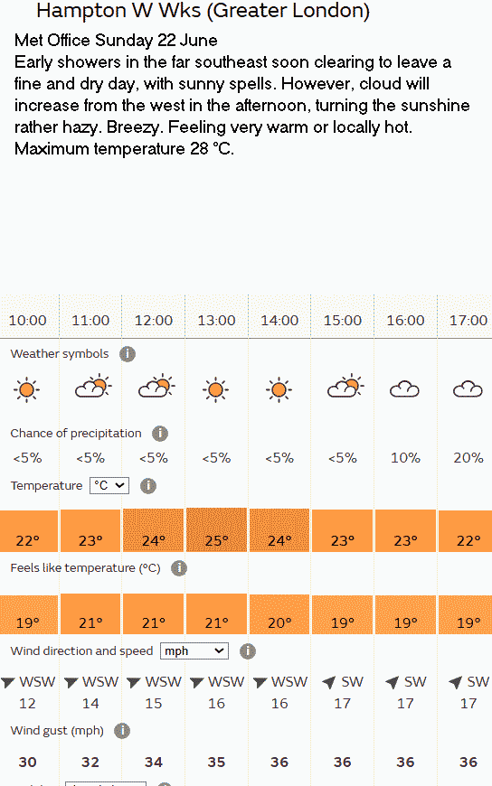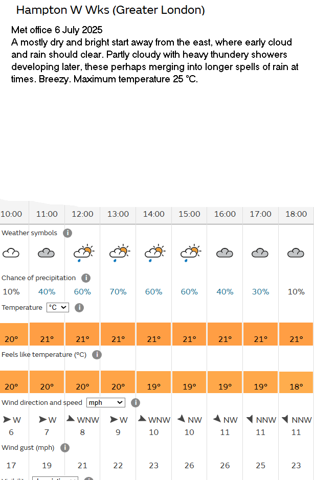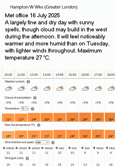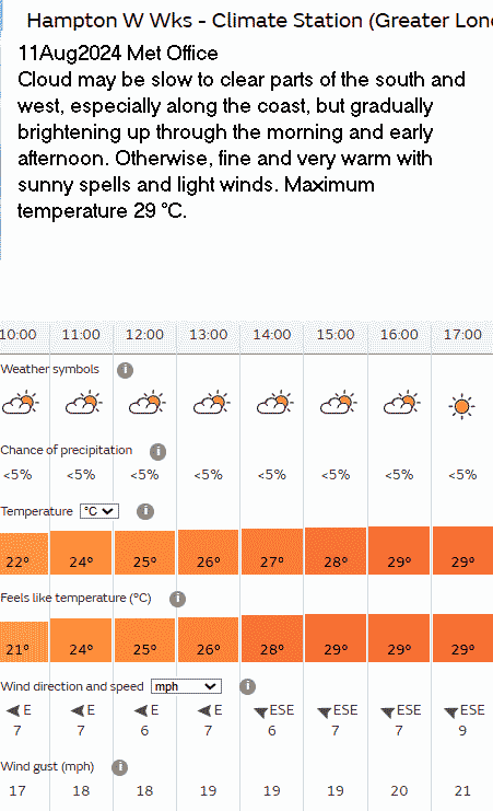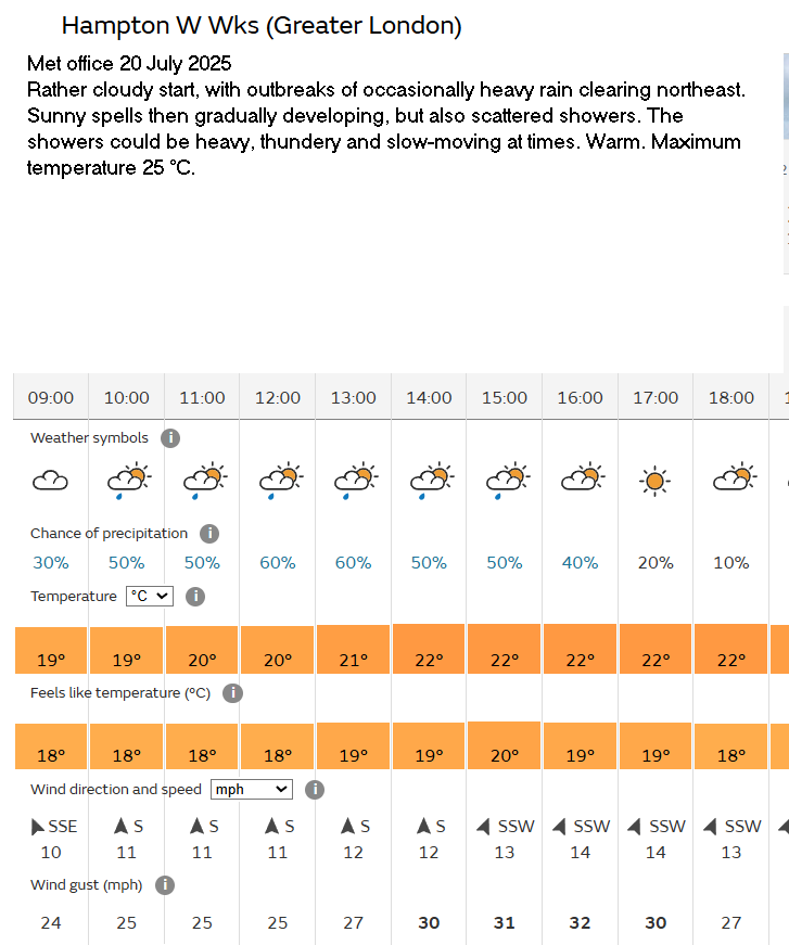 31 Aug Forecast Weather Yellow warning of thunder storms; they didn’t occur.